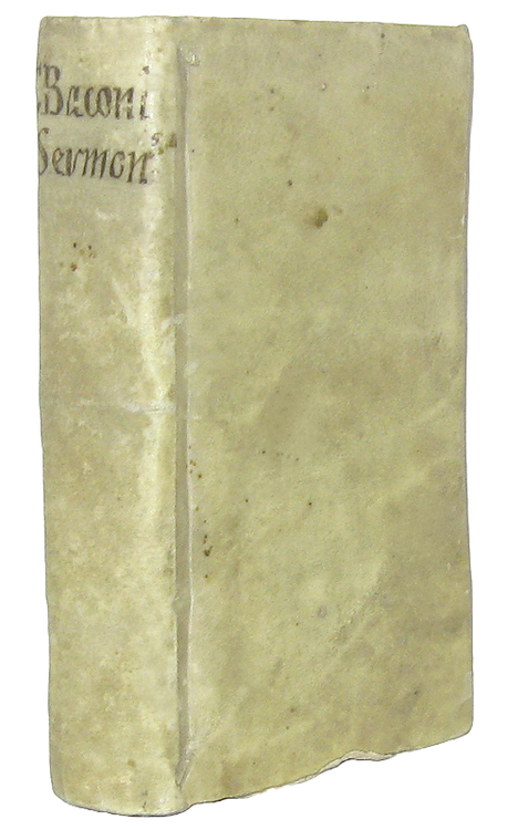 Cm. 12,5, pp. 416 (4). Bellissimo frontespizio inciso in rame. Legatura strettamente coeva in piena pergamena molle con titoli manoscritti al dorso. Trascurabili segni del tempo. Esemplare nel complesso fresco e ben conservato. Raffinata edizione olandese dei celebri Saggi morali e politici, prima opera di Francis Bacon (1561-1626), celebre filosofo, politico, giurista e saggista inglese vissuto sotto il regno di Elisabetta I Tudor e di Giacomo I Stuart. Cfr. Iccu; Willems, 1279; Brunet, I, 604; Gibson, 52.