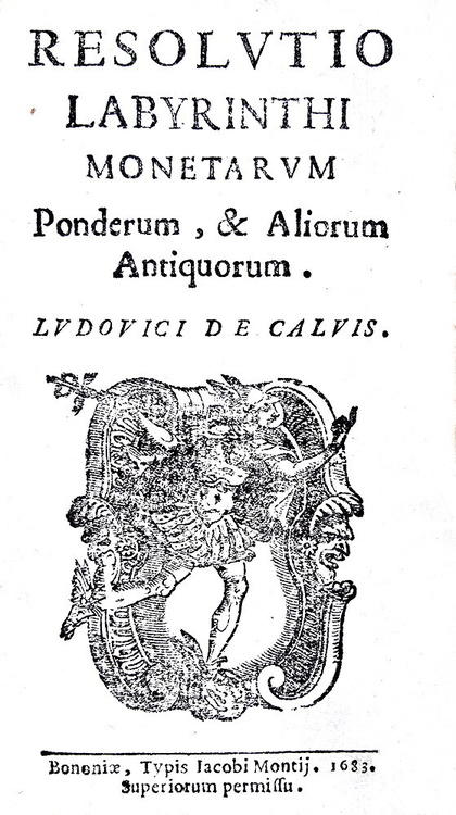 Resolutio labyrinthi monetarum ponderum, & aliorum antiquorum. Bononiae, typis Jacobi Montij, 1683.