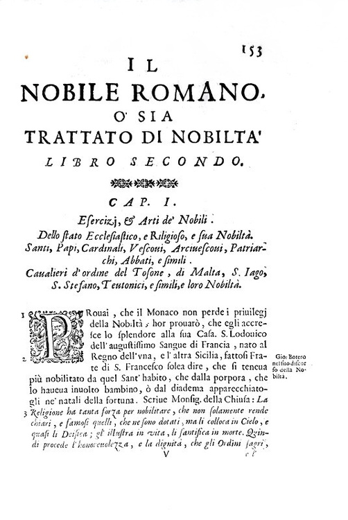 Giovanni Pietro de' Crescenzi Romani - Il nobile romano ossia trattato di nobiltà - Bologna 1693