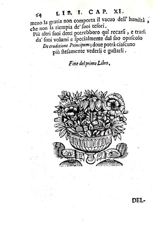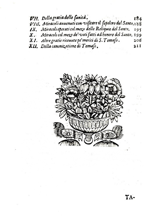 Cm. 23,5, pp. (12) 221 (25). Con uno splendido ritratto calcografico fuori testo di San Tommaso disegnato da Raffaele Vanni e inciso da Cornelis Bloemaert. Vignetta sempre incisa in rame al frontespizio (Madonna coronata con in braccio Gesù coronato ed in mano il globo del mondo ; poggia su crescente montante con teste d'angelo, circondata da un cerchio di sole). Fregi, bei capilettera e splendidi finalini xilografici. Bellissima legatura antica (ma posteriore) in piena pergamena rigida con titoli su tassello e ricchi fregi in oro al dorso; tagli spruzzati. Lievi bruniture e ordinarie arrossature, inevitabili nella carta usata a Roma nel Seicento. Esemplare nel complesso e ben conservato. Tommaso d'Aquino (1224/1225 – 1274), domenicano nativo di Roccasecca, fu teologo, filosofo e giurista. È ampiamente riconosciuto come uno dei più influenti filosofi della storia occidentale, nonché come uno dei pilastri teologici e filosofici della Chiesa cattolica. Fu il principale esponente della Scolastica medievale e per questo fu definito Doctor Angelicus già dai suoi contemporanei. Fu proclamato santo da papa Giovanni XXII nel 1323 e dal 1567 è annoverato tra i dottori della Chiesa cattolica. Nel 1880 fu dichiarato santo patrono delle università e dei centri di studio cattolici. Il pensiero di San Tommaso, definito Tomismo, risulta un punto di raccordo fra la cristianità e la filosofia classica, la quale ha i suoi fondamenti e maestri in Socrate, Platone e Aristotele. Nella storia numerosi sono stati i pensatori influenzati dal pensiero tomista, tra i quali Dante Alighieri, Gottfried Leibniz, Blaise Pascal, Jacques Maritain, Étienne Gilson e numerosi altri. Paolo Frigerio (1605 - ?), ecclesiastico nativo di Roma, appartenente alla Congregazione dell'Oratorio fondata da San Filippo Neri, fu autore nel 1656 di un'altra fortunata biografia (tradotta anche in francese) dedicata a S. Caterina da Siena. Quest'opera è divisa in quattro parti: nascita e studi; virtù del filosofo; sapienza e talento nella predicazione; miracoli, morte e seguito planetario. Rarissima prima edizione, non censita da Piantanida (Autori italiani del 1600). Cfr. Iccu.