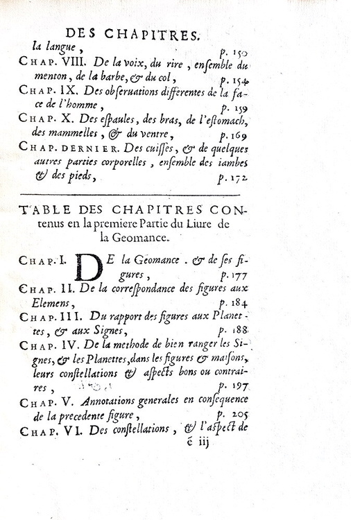 La chiromance, la physionomie et la geomance. Avec la signification des nombres, & l'usage de la roue de Pytagore. A Paris, chez Louis Billaine, au second pillier de la grand salle du Palais, à la Palme & au grand Cesar, 1663.