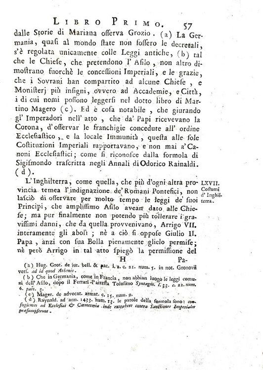 Discorso sopra l'asilo ecclesiastico. In Firenze, per Giambattista Pasquali, 1763.