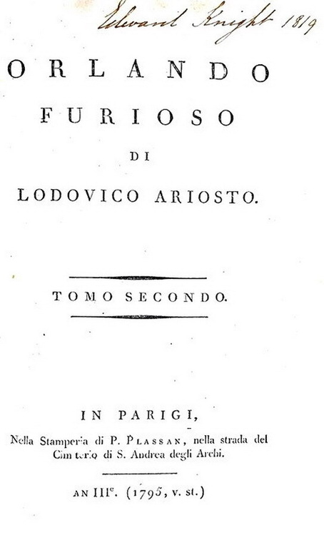 Orlando furioso. In Parigi, nella stamperia di P. Plassan, 1795.