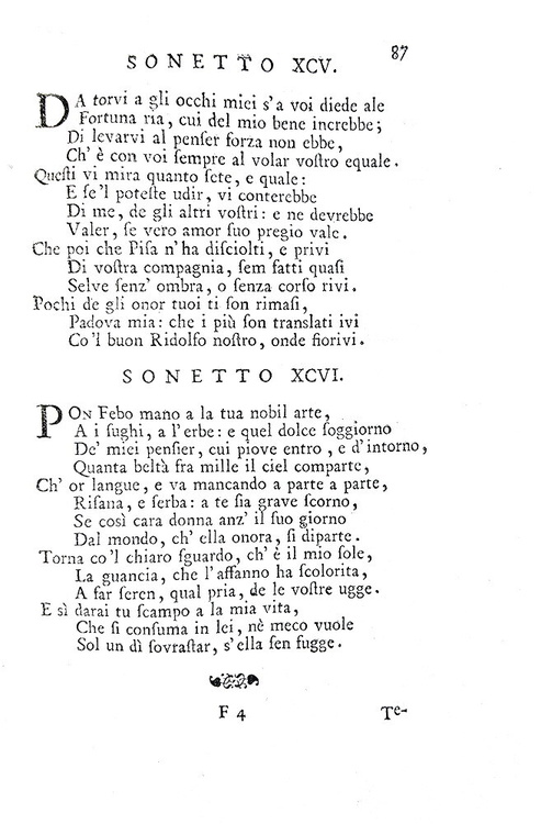 Pietro Bembo - Rime corrette, illustrate e accresciute - Bergamo, Pietro Lancellotti, 1745