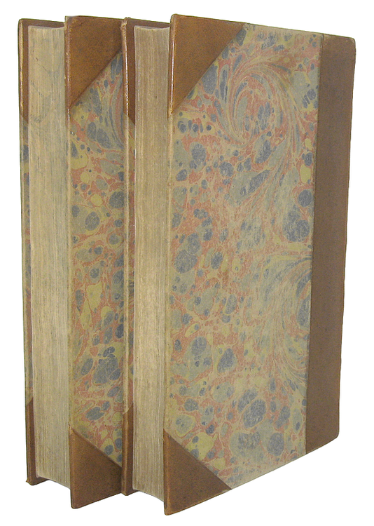 Due volumi di cm. 23, pp. xxx (2), 335 (1); xx, 400. Con centinaia di illustrazioni xilografiche n.t. raffiguranti piccoli scorci di paesaggio e numerosissime specie di uccelli presenti al tempo in Gran Bretagna. Bella legatura del tempo in mezza pelle, dorso a 5 nervi con titoli su doppio tassello e fregi floreali agli scomparti. Piatti con carta decorata e ampie punte. Qualche sporadica macchietta, fioriture limitate a poche cc. finali del secondo volume. Esemplare fresco e ben conservato. Thomas Bewick (1753-1828), incisore e cultore delle scienze naturali originario di Ovingham (Inghilterra), fu autore di numerose opere tra cui spicca questa History of british birds, suddivisa in due parti (Land Birds - Water Birds). Per realizzarla Bewick sfruttò le conoscenze ricavate dalle sue escursioni in campagna oltre che le informazioni ottenute da abitanti ed esperti naturalisti del suo tempo, come Thomas Pennant e Gilbert White. Rara prima edizione (in prima tiratura), come si desume dalla vignetta a pagina 285 (vol. I) non censurata. Cfr. Kvk; Brunet, I, 839; Graesse, I, 358.