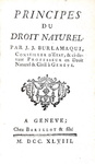 Principes du droit naturel. A Geneve, chez Barillot et fils, 1748.