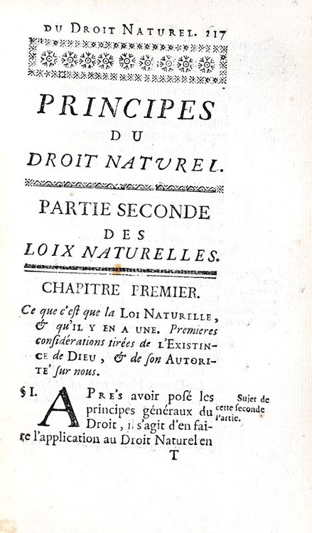 Il giusnaturalismo nel Settecento: Jean Jacques Burlamaqui - Principes du droit naturel - 1748