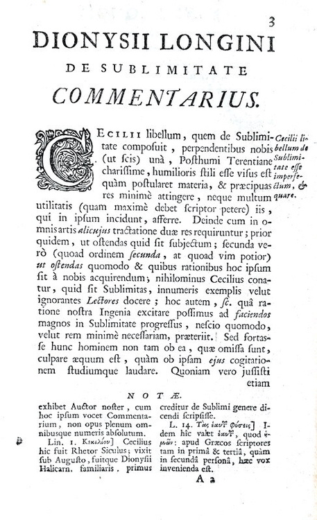 L'estetica nell'antichità classica: Cassius Longinus - De sublimitate - 1733 (legatura alle armi)