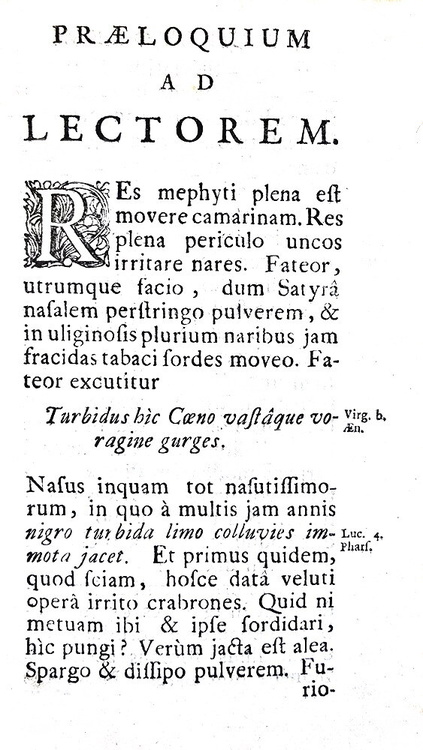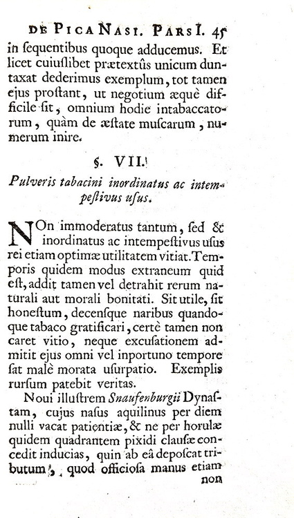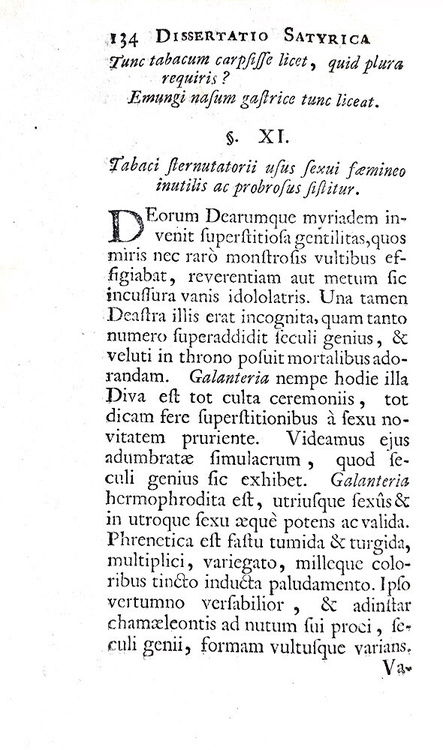 Dissertatio satyrica physico-medico-moralis de pica nasi, sive tabaci sternutatorii moderno abusu, et noxa. Amstelodami, apud Joannem Oosterwyk, 1716.