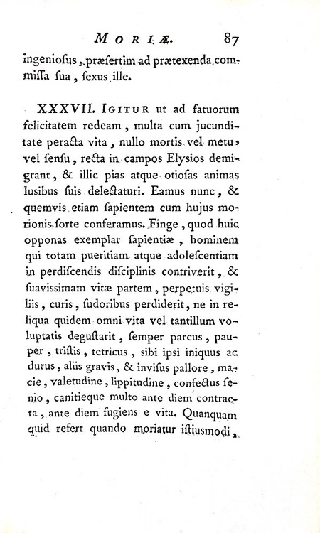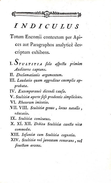 Moriae enkomion. Stultitiae laudatio. Desiderii Erasmi declamatio. Londini & venit Parisiis, apud Barbou, via Mathurinensium, 1765.