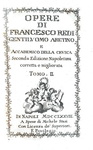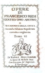 Opere di Francesco Redi gentiluomo aretino e accademico della Crusca. Seconda edizione napoletana corretta e migliorata. In Napoli, a spese di Michele Stasi, 1778.