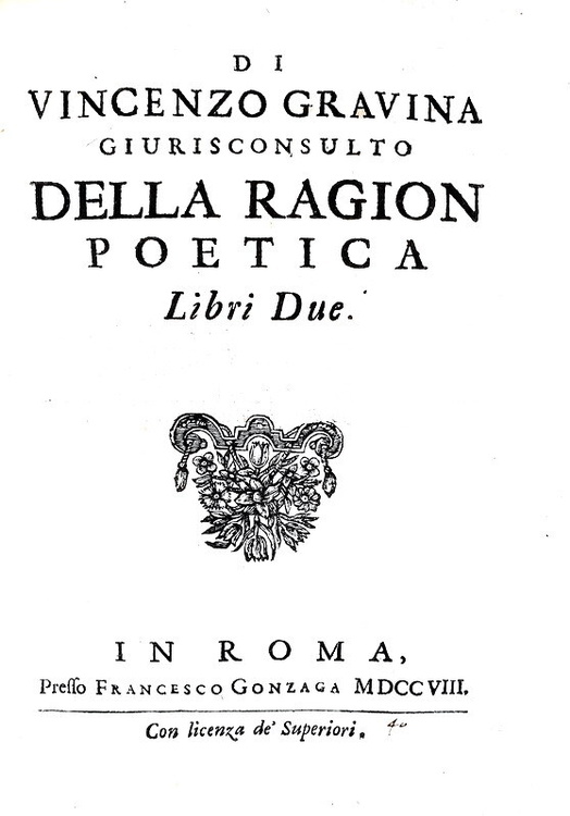 Della ragion poetica libri due. In Roma, presso Francesco Gonzaga, 1708.
