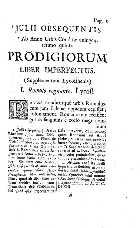 Fenomeni paranormali: Julius Obsequens - Quae supersunt ex libro de prodigiis - Leiden 1720