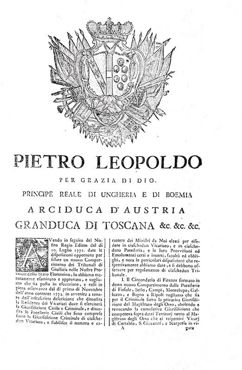 Riforma leopoldina della magistratura in Toscana: Legge per i tribunali di giustizia - Firenze 1772