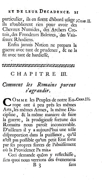 Considérations sur les causes de la grandeur des Romains et de leur décadence. Ŕ Amsterdam, chez Jaques Desbordes, 1734.