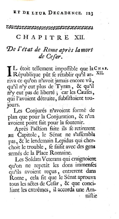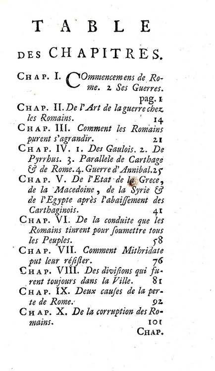 Considérations sur les causes de la grandeur des Romains et de leur décadence. À Amsterdam, chez Jaques Desbordes, 1734.