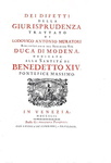 Dei difetti della giurisprudenza. Trattato dedicato alla santità di Benedetto XIV pontefice massimo. In Venezia, presso Giambattista Pasquali, 1742.