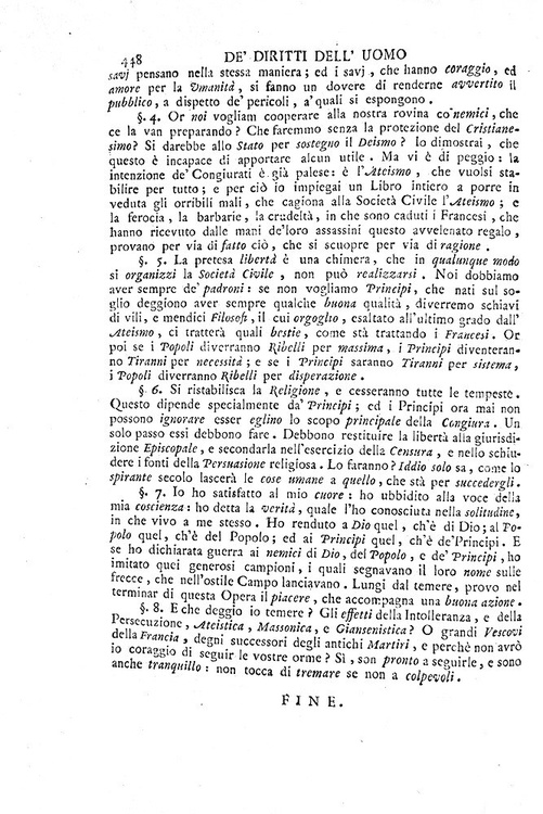 Illuminismo e Rivoluzione francese: Nicola Spedalieri - Dei diritti dell'uomo 1791 (prima edizione)