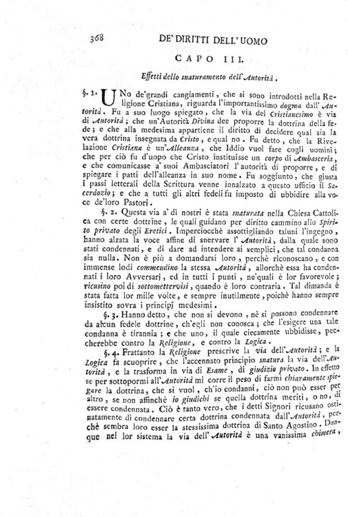 De' diritti dell'uomo libri VI. Ne' quali si dimostra che la più sicura custode de' medesimi nella società civile è la religione cristiana; e che però l'unico progetto utile alle presenti circostanze è di far rifiorire essa religione. In Assisi, s.n., 1791.
