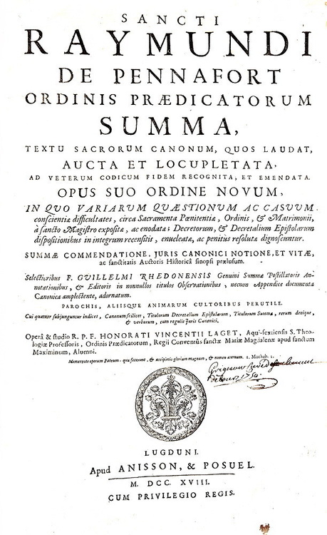 Un capolavoro di diritto comune: Raimondo di Penyafort - Summa de casibus - Lugduni 1718 (in folio)