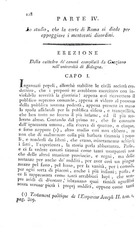 Disordini morali e politici della corte di Roma esposti alla santità di Papa Pio VI nel mese di marzo 1796 dai zelanti difensori della libertà ecclesiastica. Siena, presso Luigi, e Benedetto Bindi, 1798.