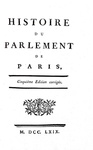 Histoire du parlement de Paris. Cinquiéme edition corrigée. S.l. (ma Ginevra), s.n., 1769.