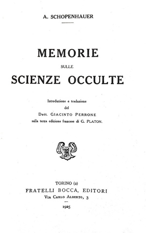 € 600Arthur Schopenhauer - Memorie sulle scienze occulte - Torino, Bocca 1925 (prima edizione italiana)